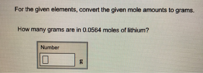 B How Many Moles Are In 15 Grams Of Lithium - Argon: Molar Mass Of Argon : You may wish to pause and calculate this value, if you desire the practice.. Complete step by step solution: How many grams are in 88.1 moles of magnesium? Methane is more flammable than ethane because. Take the time to learn mole conversions and once you understand how it works it can be applied to many different conversion (as long as you know the conversion factor). How many atoms of oxygen are in 0.100 mol of silicon dioxide, sio₂.